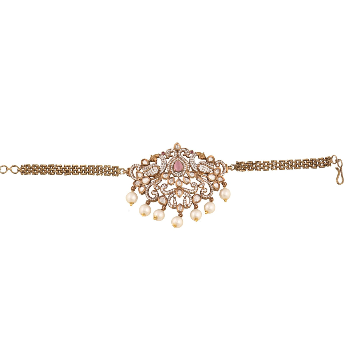 The Jean Nakshatra CZ mini choker by Tarinika is a combination of sophistication and elegance. Made with Victorian-era-inspired plating adorned with best-quality Cubic Zirconia stones and pearl drops, this designer piece never fails to impress.