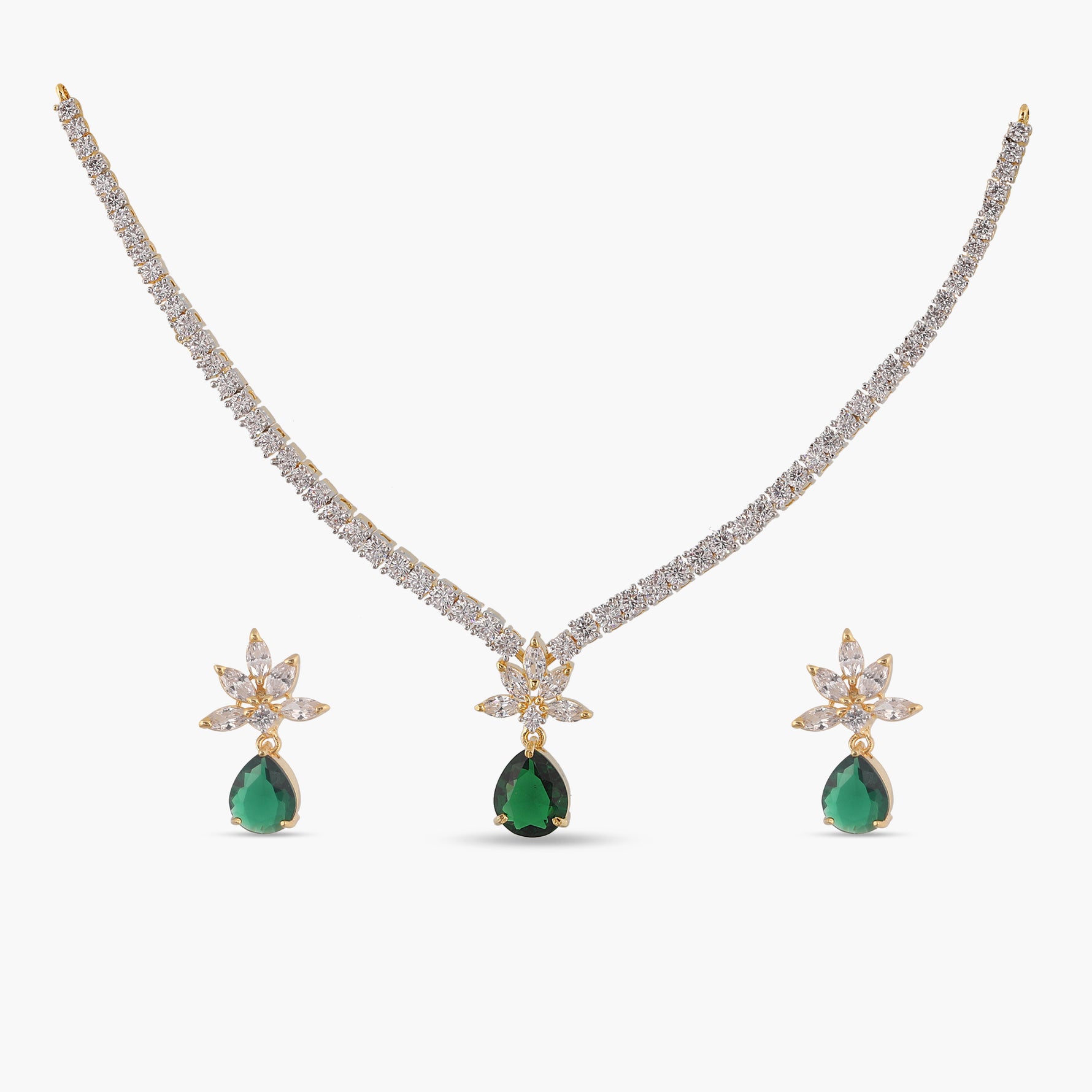 Camellia CZ Green Necklace Set