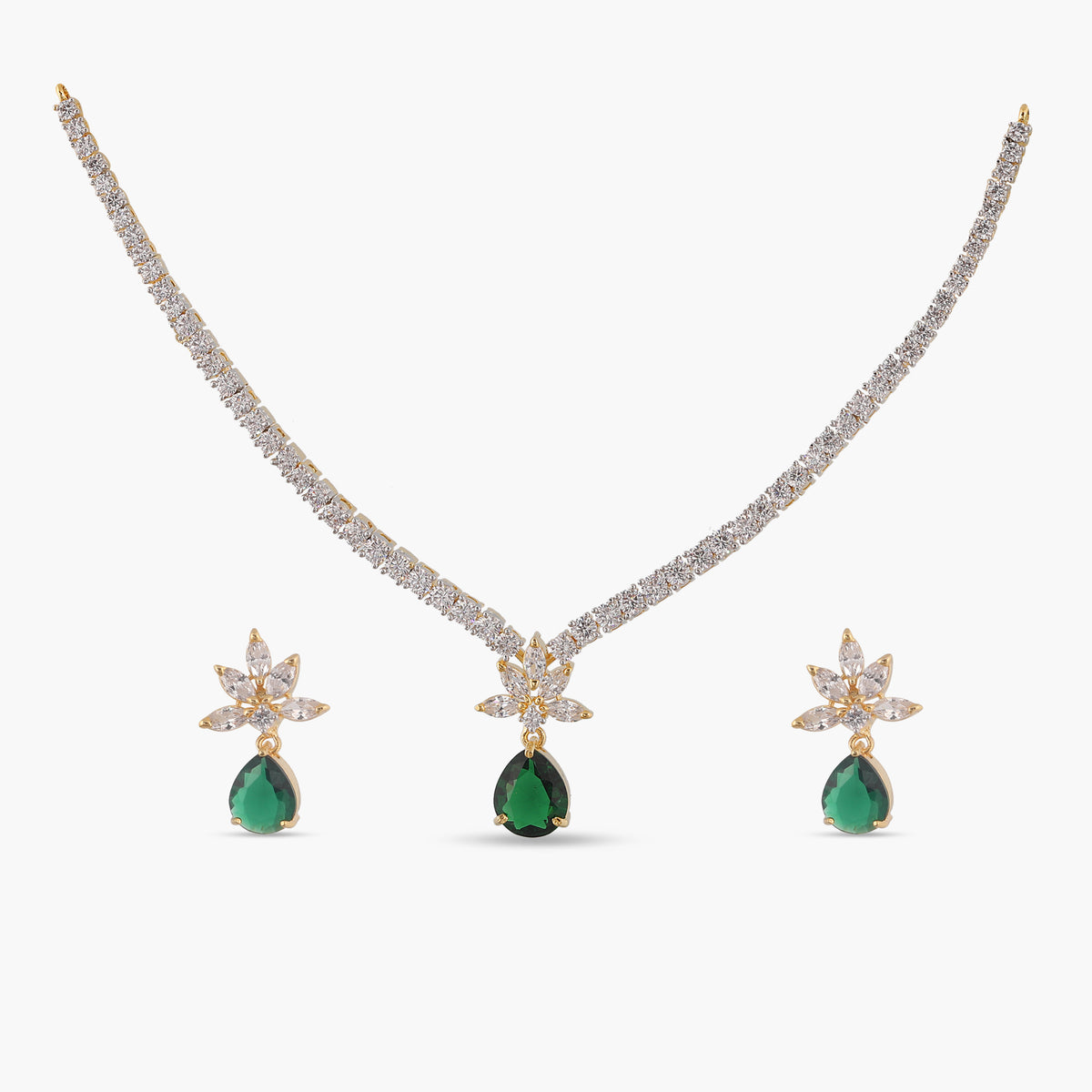 This dazzling necklace from our CZ collection is crafted to seize the attention with a shimmering mix of emerald green and white CZ stones. Set in gold plating this versatile necklace is perfect to style with any attire. A glamorous gift idea or glimmering choice for a celebration.